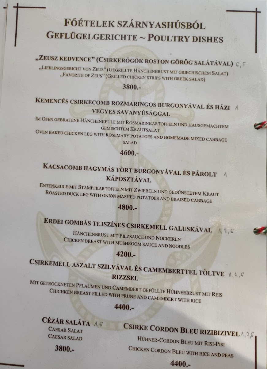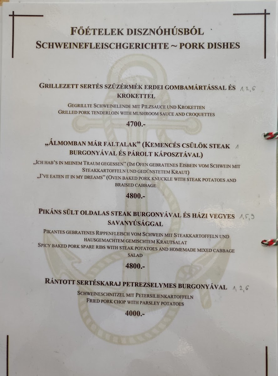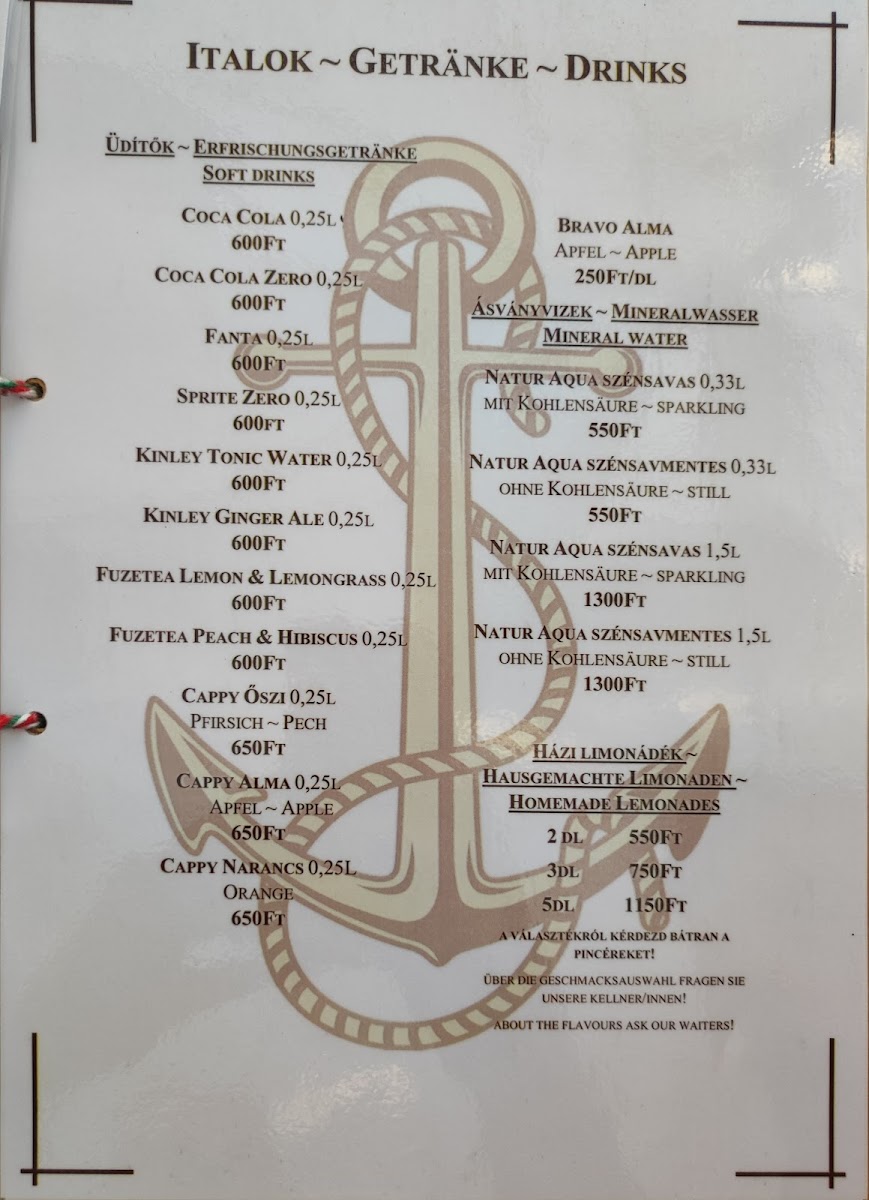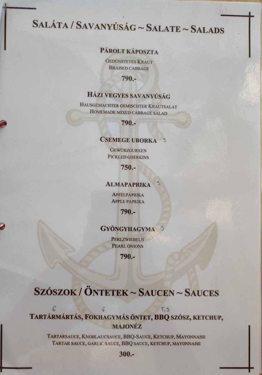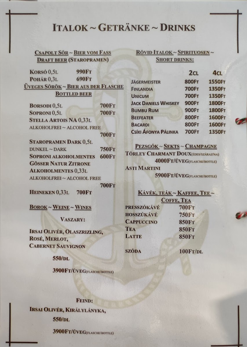 The menu features an array of tantalizing dishes. Signature offerings include fisherman's soup rich with carp fillet, grilled pike perch, and the beloved catfish paprikash. These hearty meals are generously portioned, ensuring guests leave fully satisfied.